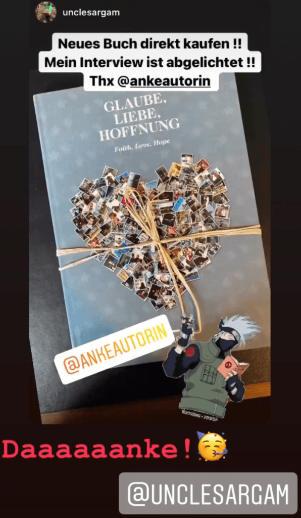 Das Buch ist direkt über mich zu bestellen, für 24,90 Euro unter Angabe der Postadresse: https://www.paypal.com/paypalme/BookFaithLoveHope